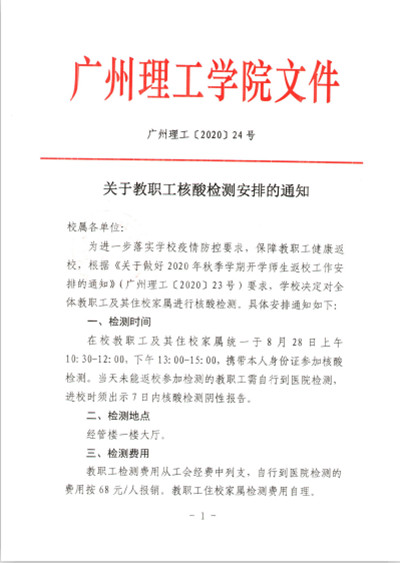 关于教职工核酸检测安排的通知