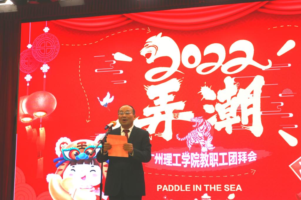 联欢会上,党委书记黄圣诚致新春贺辞。他肯定了过去一年我校教职工在党建、教学、科研、管理、服务多个方面取得的重大突破和重要成果,代表学校向奋斗在教学、管理、服务第一线的教职员工表示美好祝福和衷心感谢,号召全体教职工要把握改革机遇,在新的一年全力以赴,促进学校提质发展。