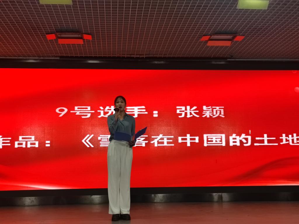 决赛共有自我介绍、经典诵读、即兴演讲三个环节。比赛过程中,参赛教师以饱满的热情、激昂的语言、得体的举止、富有创意的表现形式,赢得了在场观众阵阵掌声和一致好评,一篇篇经典美文被演绎地感情真挚,富有感染力。决赛评分标准主要考察语音语调、仪容仪表、舞台表现、作品创新性。每组选手表演结束后,评委对参赛选手的作品及个人表现进行点评,竞赛的紧张严肃与互动交流的喜庆和谐交融。