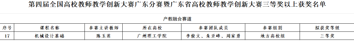 6月22日,第四届全国高校教师教学创新大赛广东分赛暨广东省高校教师教学创新大赛产教融合赛道现场决赛已落下帷幕,智能制造与电气工程学院陈玉莲及其教学团队(李俊文、朱亚峰、周家勇等)荣获三等奖,实现了我校在省教学创新大赛上新的突破。