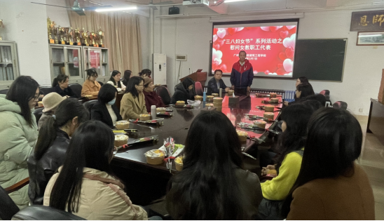 阳春三月,万木吐翠。为庆祝第114个国际“三八”妇女节,凝聚巾帼正能量,营造出健康、和谐、积极向上的节日氛围,进一步提升女教师爱岗敬业、乐于奉献的工作热情,3月7日下午,建筑工程学院工会组织学院女教师在9栋306举行“三八妇女节”系列活动之慰问女教职工代表。党总支书记、工会主席阴凡主持会议。