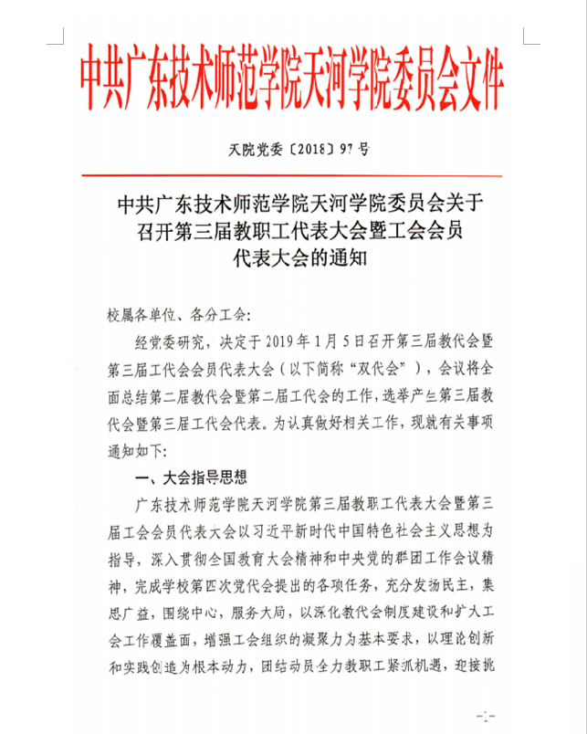 天河学院委员会关于召开第三届教职工代表大会暨工会会员代表大会的通知