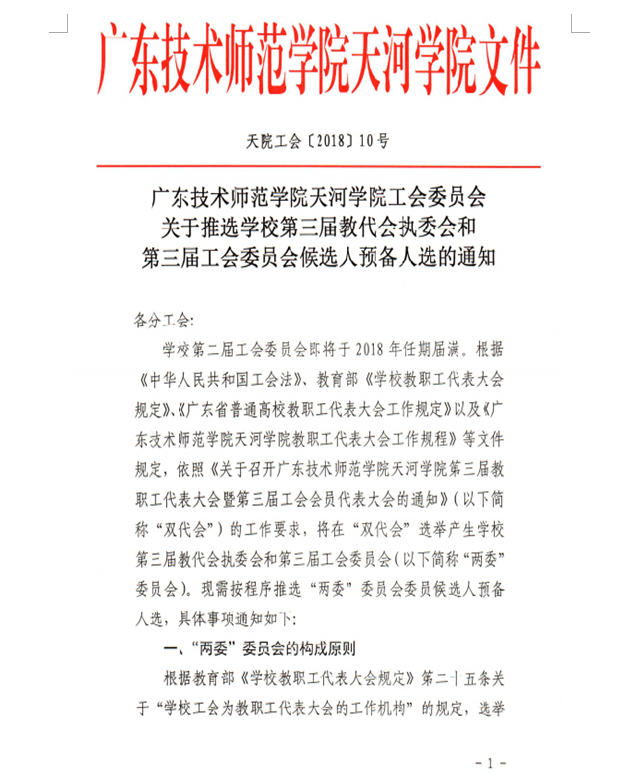 天河学院工会委员会关于推选学校第三届教代会执委会和第三届工会委员会候选人预备人选的通知