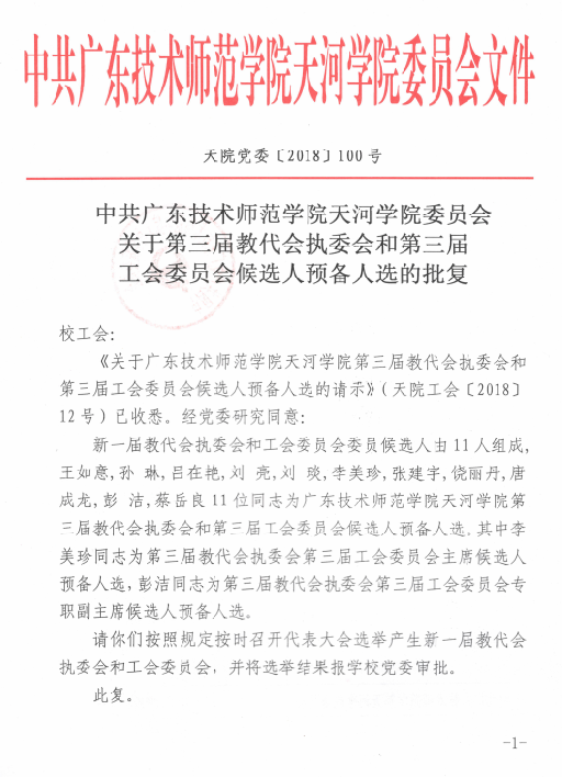 天河学院委员会关于第三届教代会执委会和第三届工会委员会候选人预备人选的批复