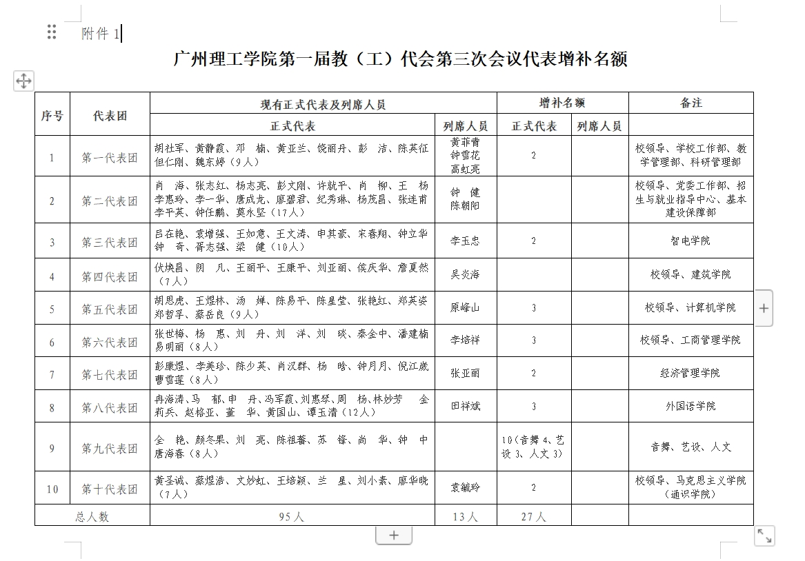 附件:1.第一届教(工)代会第三次会议增补代表名额