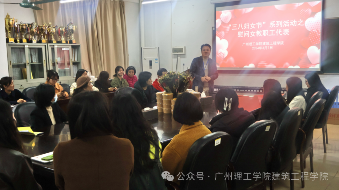 阳春三月,万木吐翠。为庆祝第114个国际“三八”妇女节,凝聚巾帼正能量,营造出健康、和谐、积极向上的节日氛围,进一步提升女教师爱岗敬业、乐于奉献的工作热情,3月7日下午,建筑工程学院工会组织学院女教师在9栋306举行“三八妇女节”系列活动之慰问女教职工代表。党总支书记、工会主席阴凡主持会议。