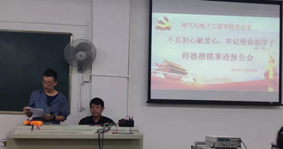 为积极响应党的号召,更有效地提高党员们的综合素质,11月7日下午,我院于电子楼204室举行“不忘初心献爱心,牢记使命助学子”师德楷模事迹报告会,本次会议由师德楷模宋春翔教授主讲,参加本次会议的有我院全体辅导员及党支部全体党员和预备党员。