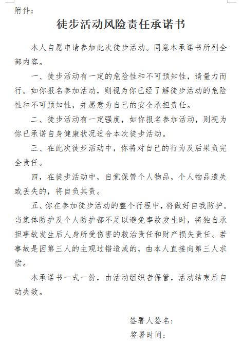 报名时间:2023年4月4日至4月6日活动时间:2023年4月15日(星期六)8:00在行政楼前集合,8:30准时出发